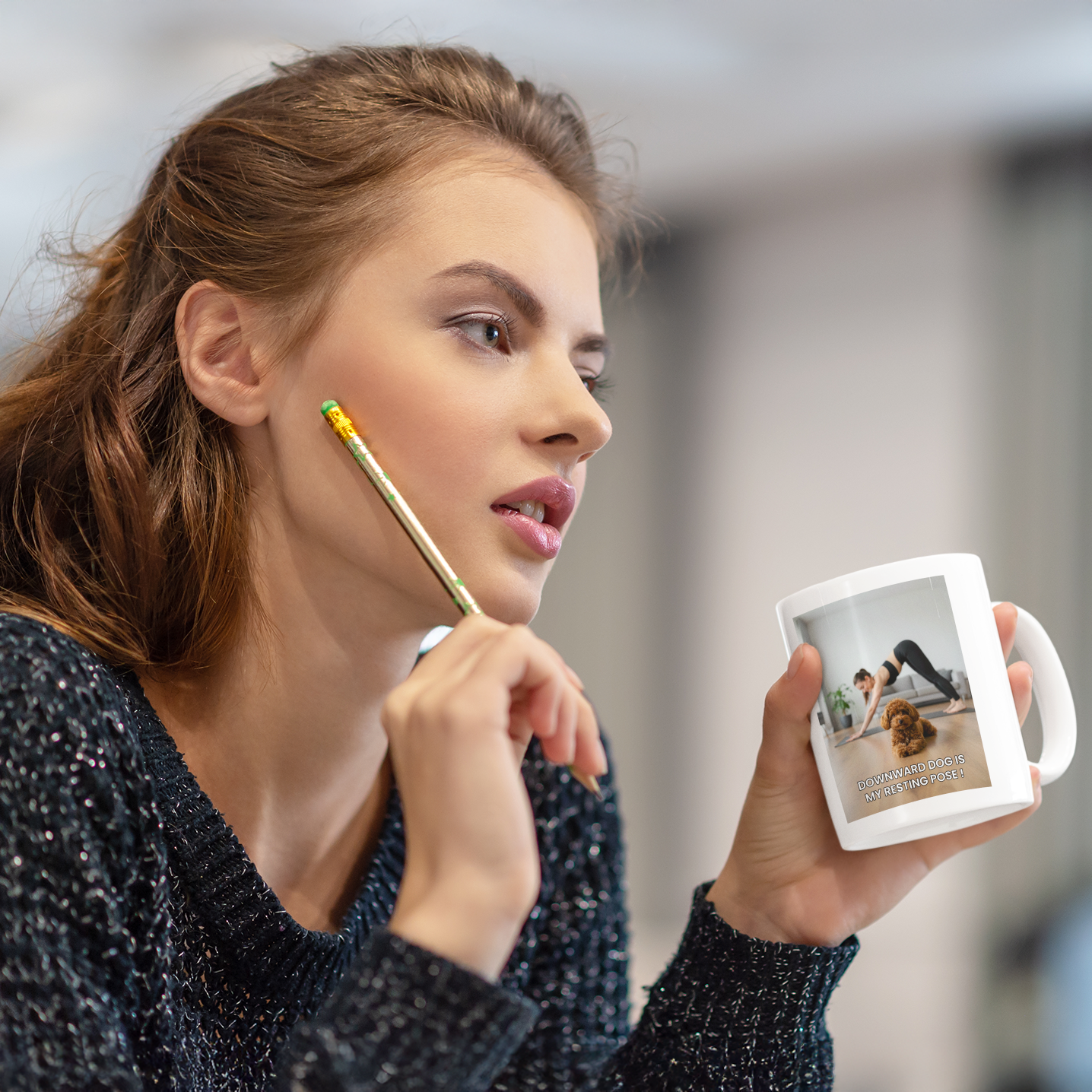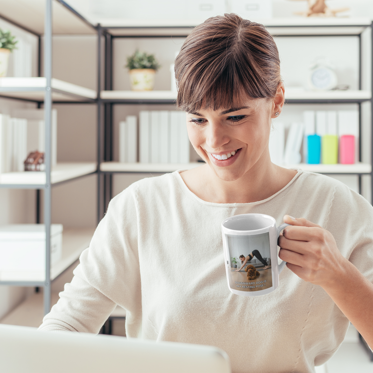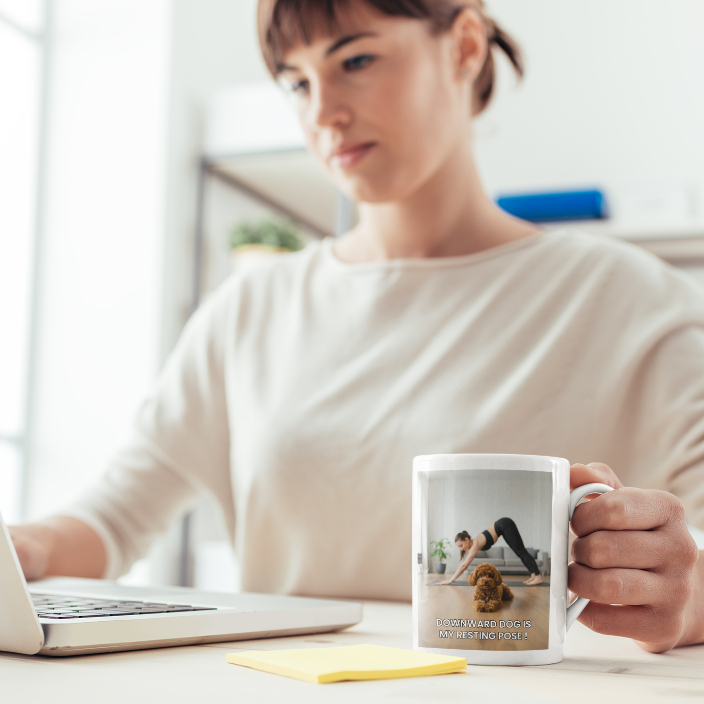 Downward Dog? More like Downward Diva—this mug’s got attitude.